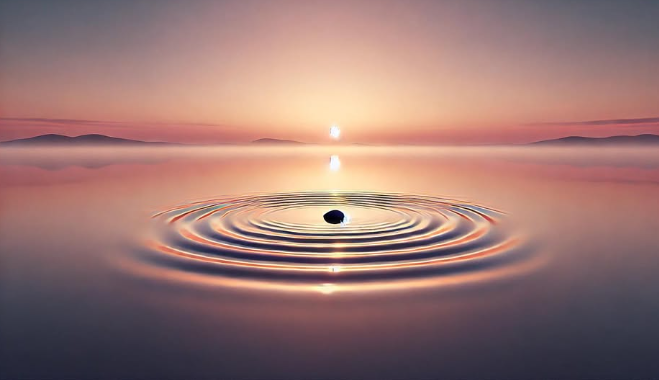 Imagine a large lake early in the morning. The surface is completely still. When a single stone touches the water, circles begin to spread outward.